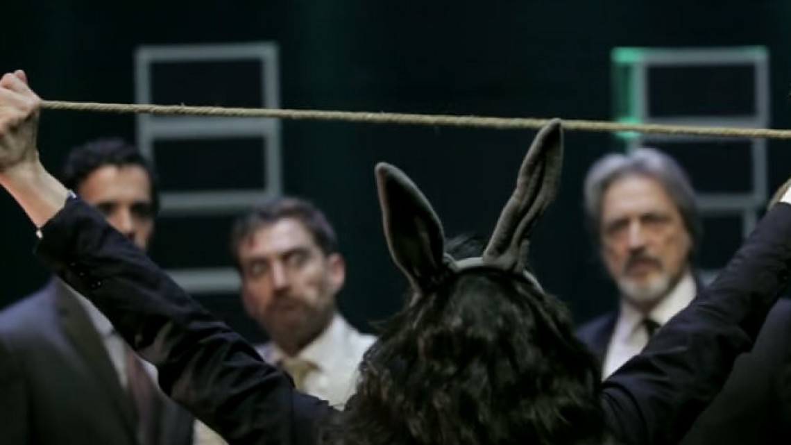 Partiendo de esa premisa, Mayorga nos ofrece un teatro que no se aparta de algunas de las coordenadas habituales en su escritura, cincelado a base de contenidos políticos, históricos y filosóficos, y sumándole, a la pieza que nos ocupa, ademanes de parodia.
