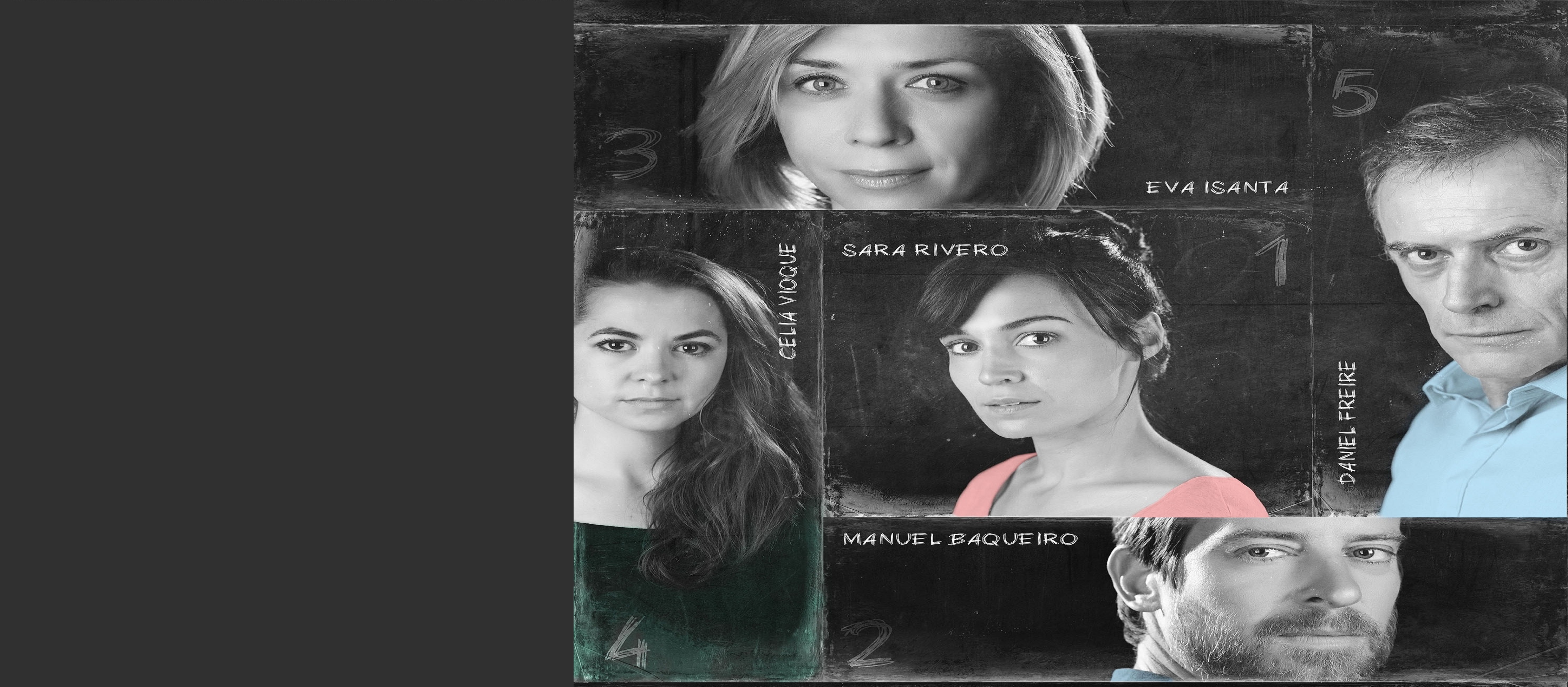 Reparto (por orden alfabético): Manu Baqueiro, Daniel Freire, Eva Isanta, Sara Rivero, Celia Vioque
