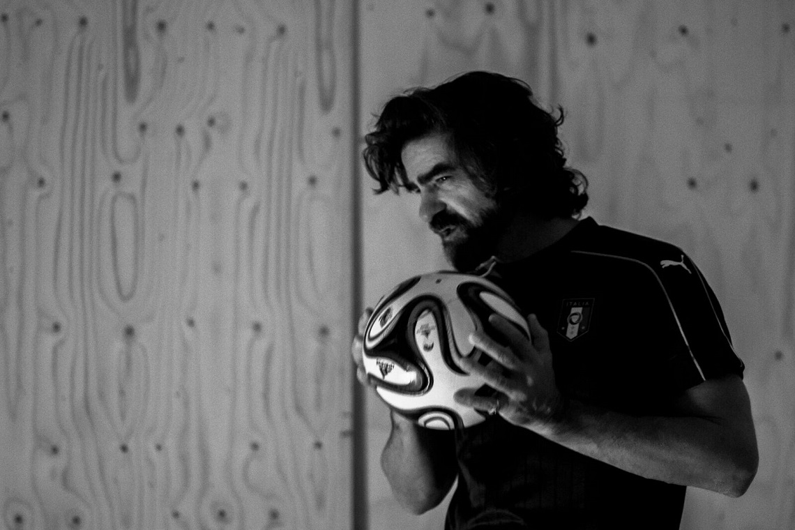 Breves proyecciones de diapositivas en una de las paredes de madera de la caja, el público, unas treinta personas por turno, y Cunill vestido con la primera equipación de la selección Italiana de fútbol de 2016 y un balón. El propio Pasolini entendía el fútbol como la última representación sagrada de una época. Rito, evasión. El fútbol, decía, es el espectáculo que ha sustituido al teatro. Incluso por encima del cine.