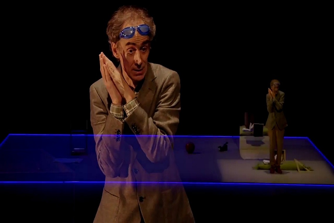 Esta podría ser una sinopsis de la obra «Intensamente azules» que firma, en la autoría, Juan Mayorga y que él mismo dirige. Protagonizada por César Sarachu, nosotros la hemos podido ver en el Teatro de la Abadía.