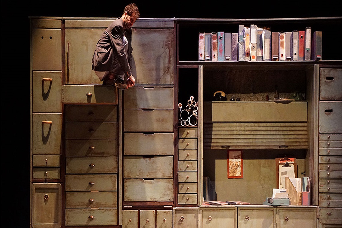 Lo que el espectáculo acaba generando en el público, si se parece algo a lo que generó en nosotros, debería ser un auténtico goce. A nosotros nos dejó boquiabiertos de felicidad. Todo es genuino en la construcción del universo al que asistimos con independencia de las imágenes o conexiones que cada cual pueda establecer según sus referentes emocionales o personales. Fíjense: al que escribe le llegaban referencias al mundo Kafkiano de obras como El Castillo. El personaje que Alcántara interpreta en escena bien podría ser un agrimensor trabajando inmerso en una rueda de papeleos y burocracias paralizantes. Es cierto que el propio autor y creador, en el programa de mano y dossier de prensa , hace mención a otro referente muy poderoso: el Bartleby de Melville (suponemos que por aquellas resonancias del «preferiría no hacerlo»).