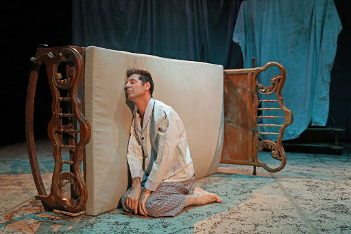El denominador común de todas estas ideas reside en la transgresión que comporta fantasear (mucho más que el que se deriva del ejercicio de imaginar). Nos gusta este modo de verlo. No sabemos desde donde se planteó Manolo Alcántara su circo surrealista; su espléndido espectáculo visual de danza, música, canciones y marionetas. Suponemos que comenzó por imaginar. Imaginar a ese hombre, que él encarna en escena, levantándose de la cama, deseando seguir dormido, resistiéndose a la vigilia, condenado a comenzar un día luchando contra los elementos más cotidianos: la cama, la indumentaria, los espejos. Suponemos que, después, llegó la hora de introducir la fantasía en esta maravillosa pieza que es «Déjà Vu». Porque el personaje transita incorporando lo irreal a lo real, mezclando lo ordinario con lo monstruoso. Lo simbólico con lo prosaico.
