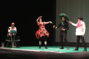 Hay otros momentos más de relleno, digámoslo así, como el de la fan. Cuadro, este, que se alarga demasiado y hace que la risa se contraiga y salga de la rotonda paródica en la que habíamos logrado entrar y de la que no deseábamos salir. Intercalado, llegará después el momento del pánico escénico cuando los actores y la actriz elijan , de entre el público, a un/a ayudante para la siguiente escena: una cámara recorre patio de butacas en búsqueda de un/a cómplice.