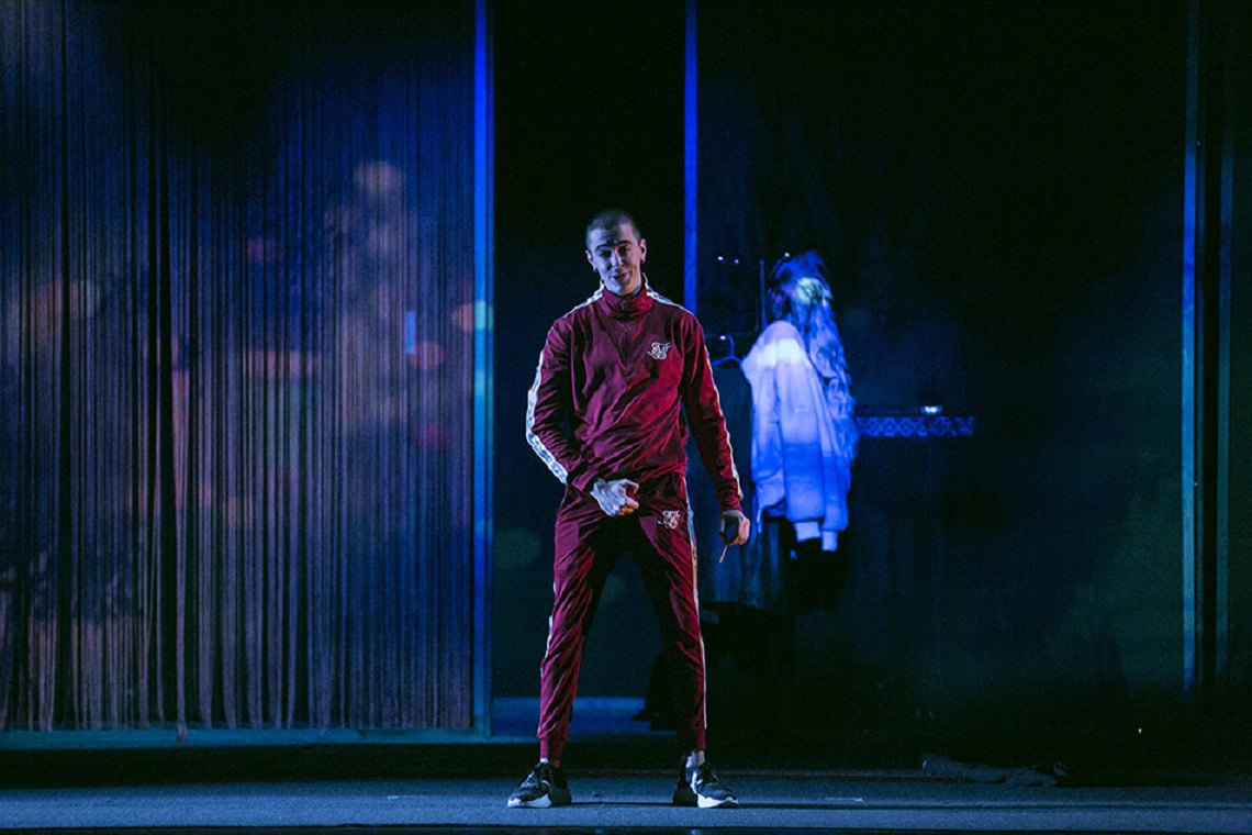 A lo largo de toda la pieza, asistimos un tanto apesadumbrados a un cóctel de lo grotesco con lo sórdido; un totum revolutum de clichés en torno a la figura del homosexual reprimido, del gay armarizado, del machito que oculta su pluma y sus deseos, de la masculinidad tóxica que solo sabe resolver las cosas a base de odio, rabia y actitudes fascistas contra un «otro» elevado a la categoría de «contrario», de «escoria a la que aniquilar y pisotear». Nos da bastante asco el Johnny que apalea gays en los bosques, en los parques. Ese sería el retrato de uno de esos seres inmundos que golpearon hasta la muerte a Samuel Muñiz en A Coruña (a día de hoy, aún la policía investiga si se trató de un crimen con agravante de odio cuando lo mataron al grito de «muérete maricón». Mejor me callo). No nos es posible empatizar con ese Johnny Chico por mucho que House, el autor, nos muestre todas sus vulnerabilidades y contradicciones. A ver, que el chico no quiere pegar a homosexuales, dirán algunos. Ya. Pero les pega. Y los rechaza en su proceso de descubrimiento de que a él le gustan los hombres. ¿No te das cuenta de que no tiene una familia que le haya apoyado, ni un entorno?, dirán algunos. Claro. Lo mismo, a lo mejor, podríamos decir de los que mataron a golpes a Samuel Muñiz en el paseo marítimo de Riazor. No y no. No nos sale la empatía. Y eso va a lastrar el resto de la obra porque nunca podremos comprender una conversión tan rápida: de asqueroso patea maricas, a la fuerza, en los parques a Johnny Chica cantando y bailando y soñando con desayunar en Tiffany o, mutatis mutandis, en cualquier Starbucks yendo por las calles de la mano de un tipo varonil del que se ha enamorado. Demasiados sobresaltos identitarios en una hora y media escasa. Too much even for us.