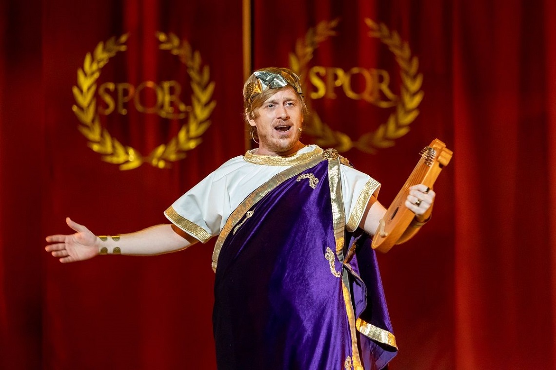 Destacan algunos momentos musicales bien defendidos por sus intérpretes que, además le añaden un plus al libreto. Igualmente, la risa está asegurada cuando uno de los personajes que encarna Javier Canales, el personaje de «La bestia de los Cárpatos», aparece en escena. Maravilloso momento de carcajadas. Probablemente los dos personajes que interpreta este actor, el de «La Bestia de los Cárpatos» y el del «Ciego», sean los más eficaces del conjunto y los que más nos seducen. También destacables, sin duda, y dentro de un elenco coral, los otros cuatro personajes protagónicos que interpretan Jaime Figueroa (como Nerón), Agustín Jiménez (como el senador Pisón), Leo Rivera (como Cayo) o Lorena Calero (como Popea).