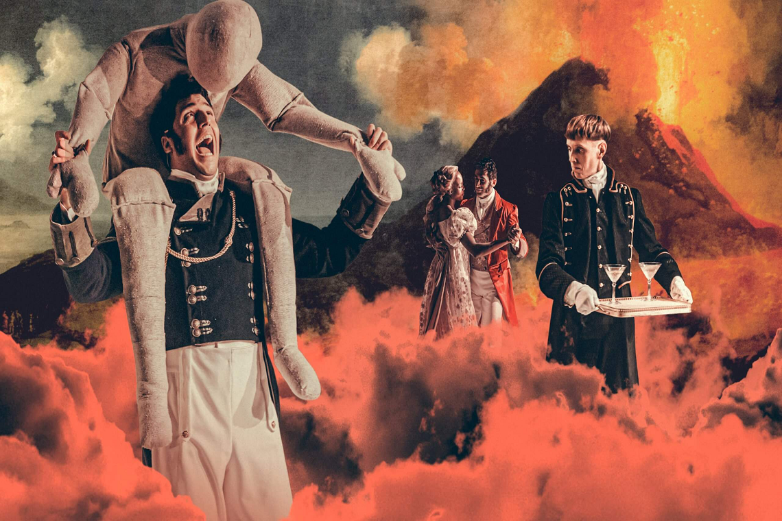Discurre en paralelo al Congreso de Viena la poética idea de que en un lugar remoto está teniendo lugar la erupción de un volcán. Se trata de la descripción, un tanto mistificada, de un caso real: el de la peor erupción en tiempos modernos provocada, en 1815, por el volcán Tambora, en la isla indonesia de Sumbawa. Su bruma y su estela llegó a lugares del otro extremo del mundo. Tanto es así que llegaría a inspirar a pintores como J. M. W. Turner (solo hay que ver su cuadro «Canal de Chichester» para captar cómo la bruma del volcán encapotó los cielos del hemisferio norte) y es, además, el famoso volcán que hizo que las temperaturas se desplomasen y que no dejase de llover en meses en el año 1816, lo que llevaría a una serie de amigos ingleses (Percy B. Shelley, Mary Shelley, Lord Byron o John Polidori) a encerrarse a escribir relatos de terror en Villa Diodati, en Ginebra. Recordemos que ahí nacería el relato de «Frankenstein«. Nada más y nada menos.