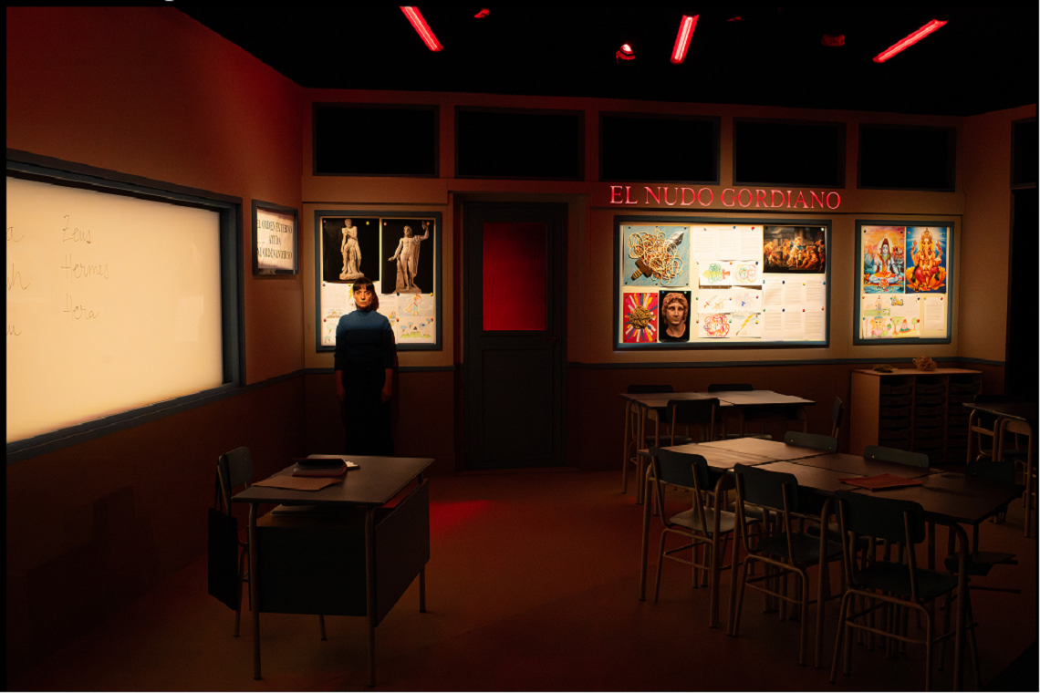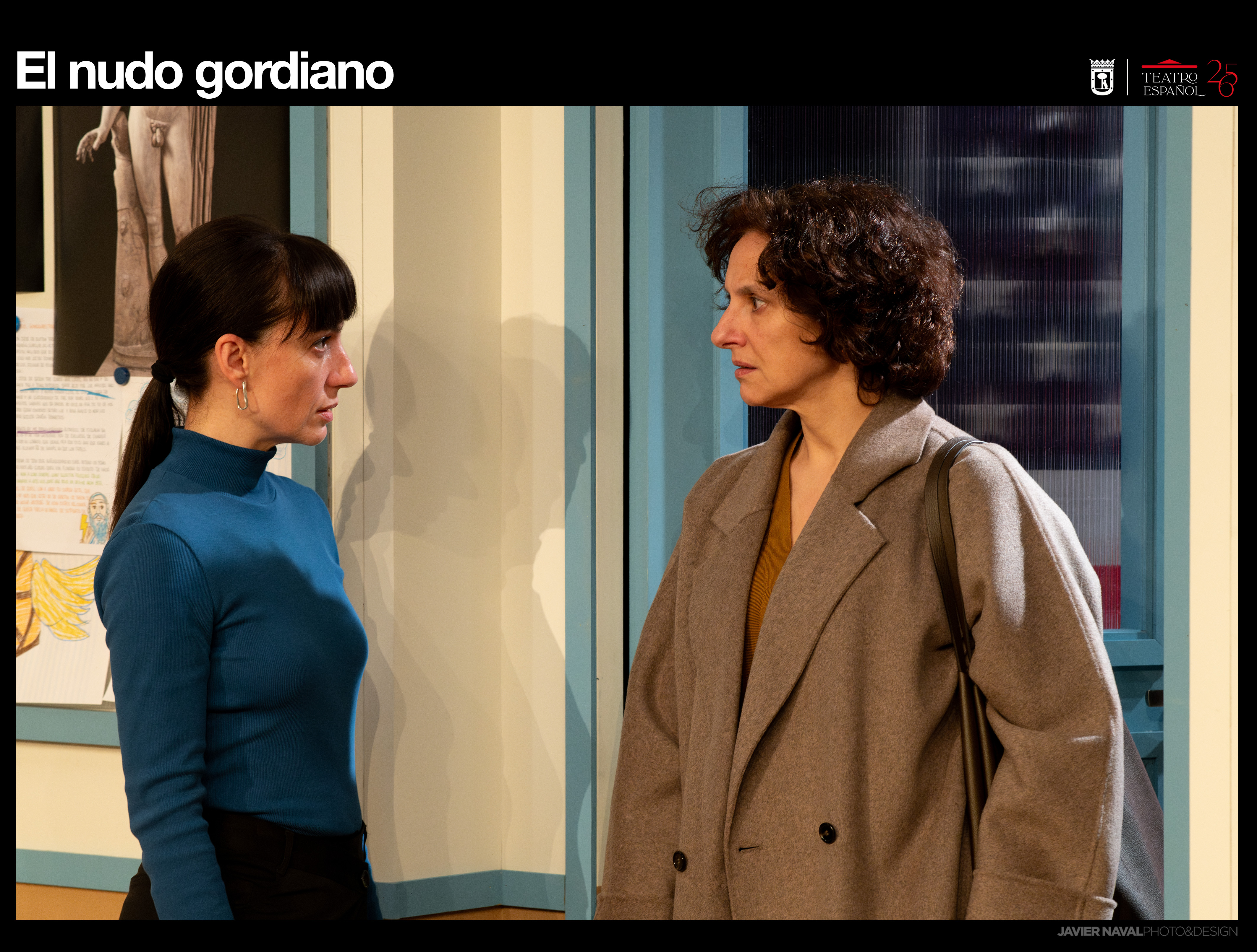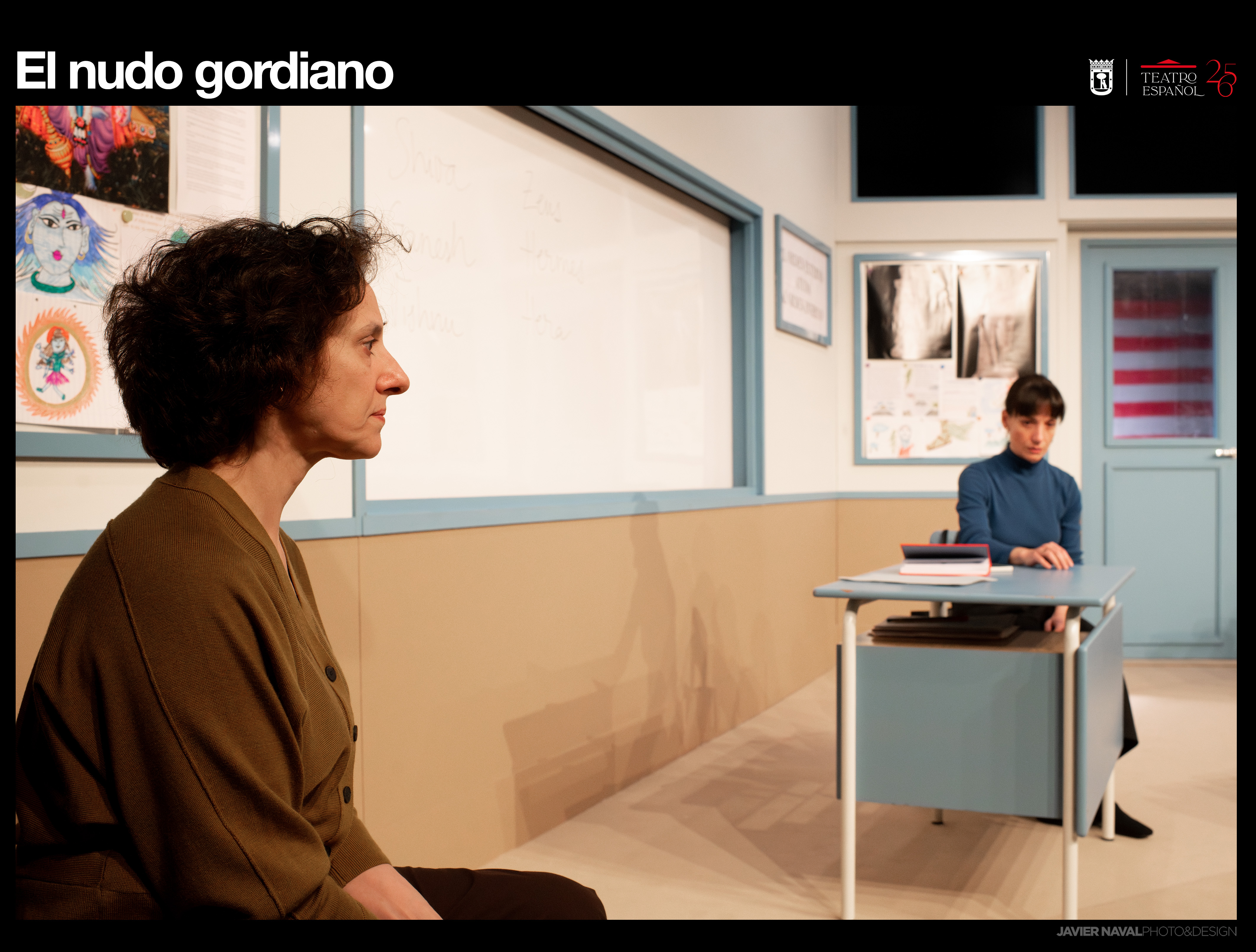 Las dos mujeres comienzan una conversación un tanto enajenada, disociada, equívoca, pero cargada de tensión. Una conversación cuyo trasfondo no deja de ser el de qué cabe hacer ante un problema cuyo nudo es tan apretado que no puede desatarse. El personaje de la profesora parece estar escrito desde la idea de quien defiende que el problema hay que intentar resolverlo, comprendiendo, matizando, elaborando un contexto, un protocolo que lo haga asimilable. La madre, aunque por momentos apunta igualmente en esa dirección, parece estar escrita desde otro ángulo: el de acudir a la cita decidida a cortar el nudo con su espada de palabras afiladas. Este nudo que pretende cortar la madre no pasa por ser visto como un acto heroico al estilo del de Alejandro Magno. Quizás audaz sí, pero su llegada al aula, al encuentro con la profesora de su hijo, proyecta sobre el público una necesidad, una urgencia. Lo que ella busca es una explicación, una narrativa que le permita incorporar la pérdida de su hijo (estamos ante un duelo palpitante). Y en esa urgente necesidad, la madre necesita sobre todo un culpable, un otro al que acusar (así es como ella daría por cortado el nudo). Si puede llegar a cortarlo, sobrevivirá. No se repondrá, pero encontrará un lugar desde el que seguir con su duelo. Transformar un dilema en una acusación es también una forma, precaria, de seguir hacia delante, especialmente cuando el dolor es tan fuerte como el de la pérdida de un hijo. Buscar culpables suena legítimo para quien necesita hacerse cargo de un desconsuelo insoportable y, pese a la evolución crispada e intelectualmente recalcitrante de la conversación, admitimos que la madre solo desea encontrar su descanso o un refugio en el que guarnecerse para comenzar a curar una herida profunda.